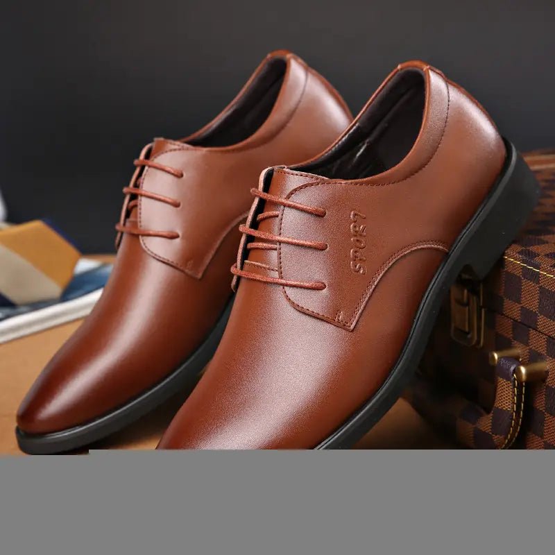 Step into timeless British elegance with these classic leather dress shoes. Crafted in the traditional British style, these shoes embody sophistication and professional excellence.