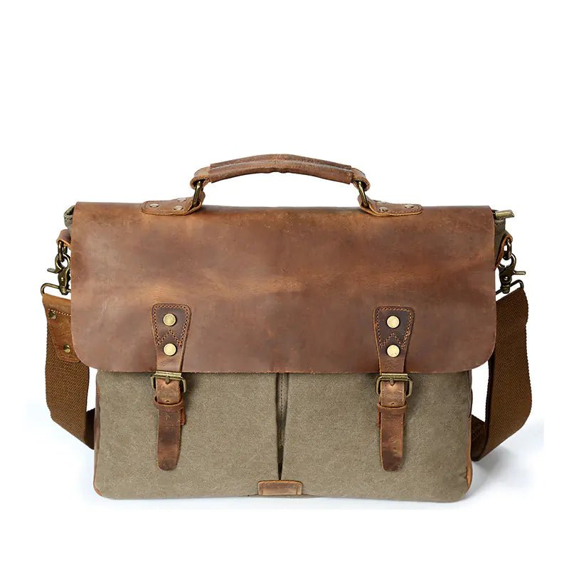 Crafted from high-quality encrypted wash canvas and the finest top layer crazy horse skin, this bag not only looks good but is built to last. The handmade craftsmanship ensures that each piece is unique, showcasing meticulous attention to detail.