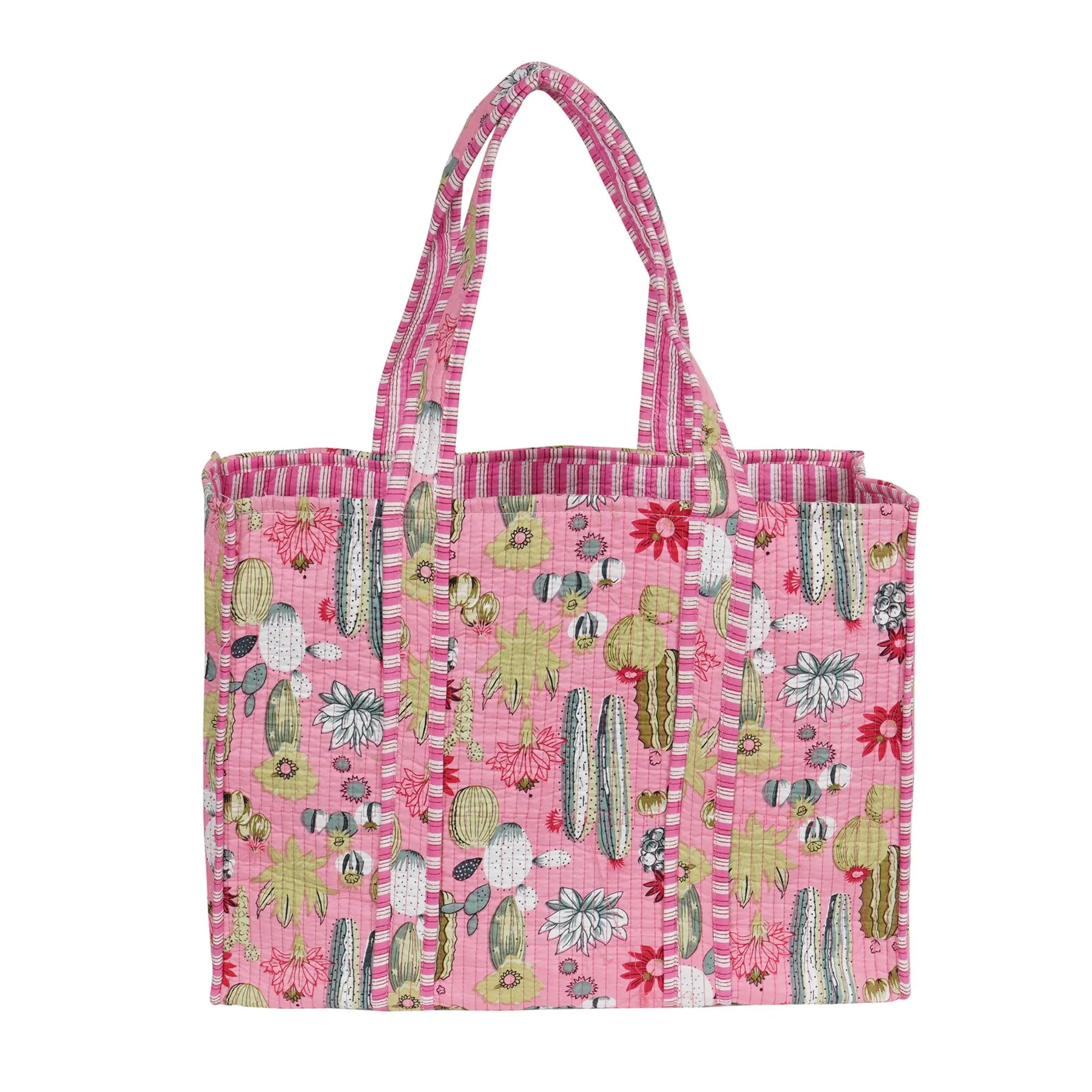 The soft, comfortable shoulder straps are designed for extended wear, making this tote perfect for long shopping trips, beach days, or any adventure where you need reliable, comfortable carrying. The quilted cotton construction provides structure while maintaining flexibility.
