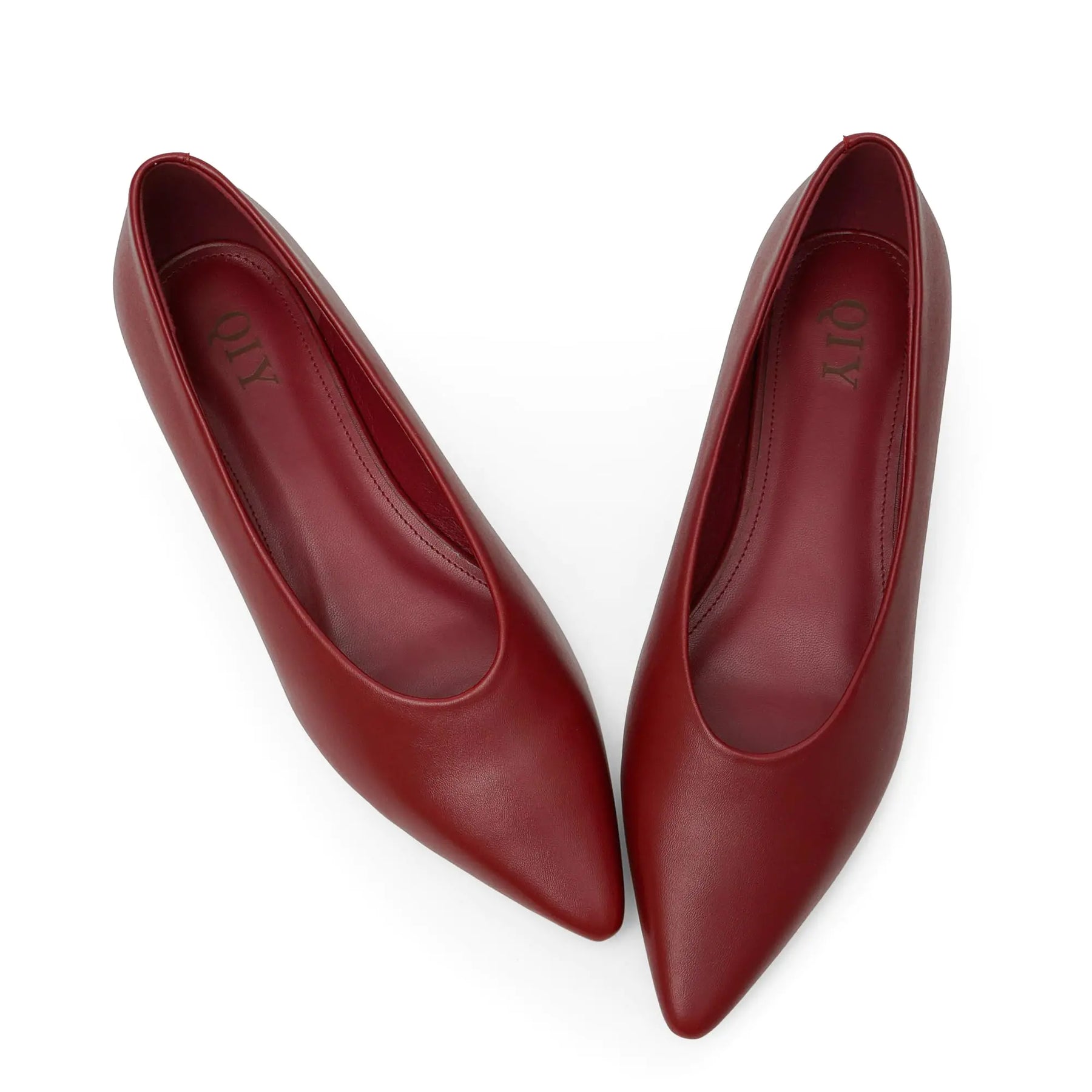 Make a stunning statement with these QIY Burgundy Ballet Flats featuring a chic pointed toe design and luxurious burgundy color. Perfect for the modern woman who appreciates timeless elegance with contemporary comfort!