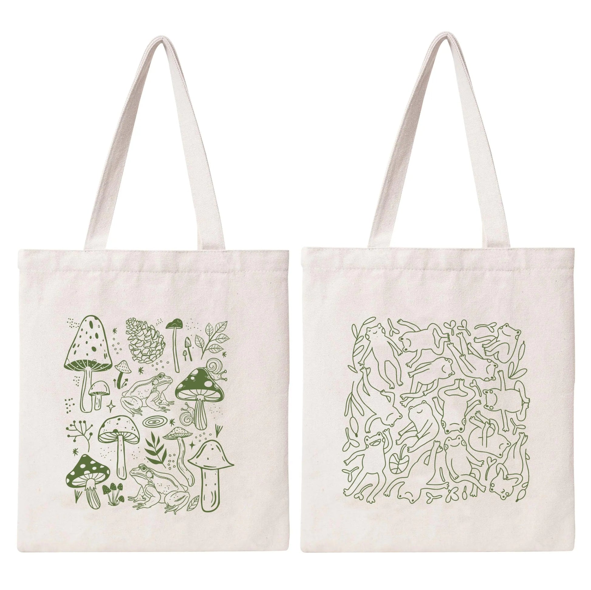 Lamkidle Aesthetic Mushroom Tote Bag - Cute Cotton Canvas Reusable Bag