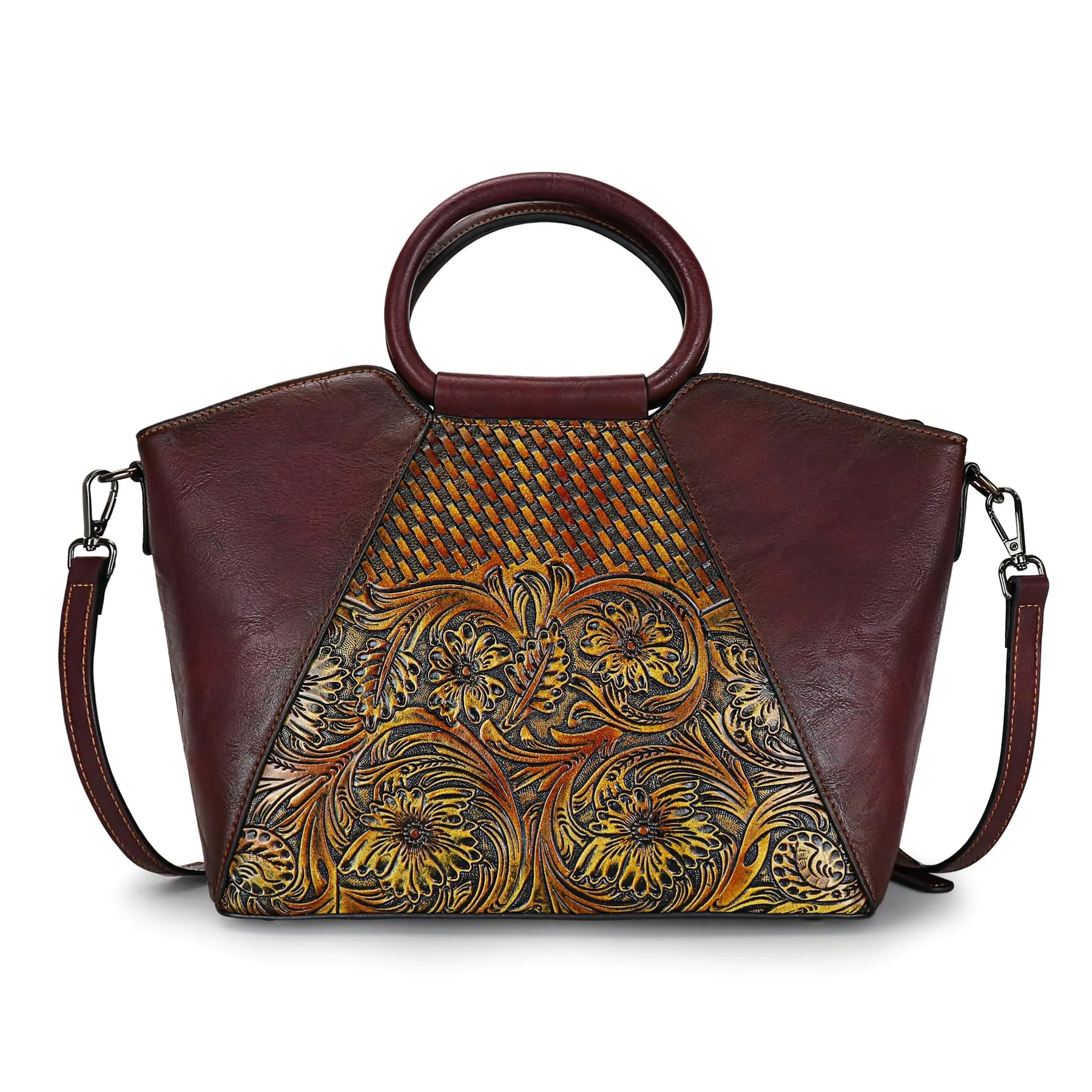 Women's Vintage Leather Satchel - Multi-Way Crossbody Tote Handbag