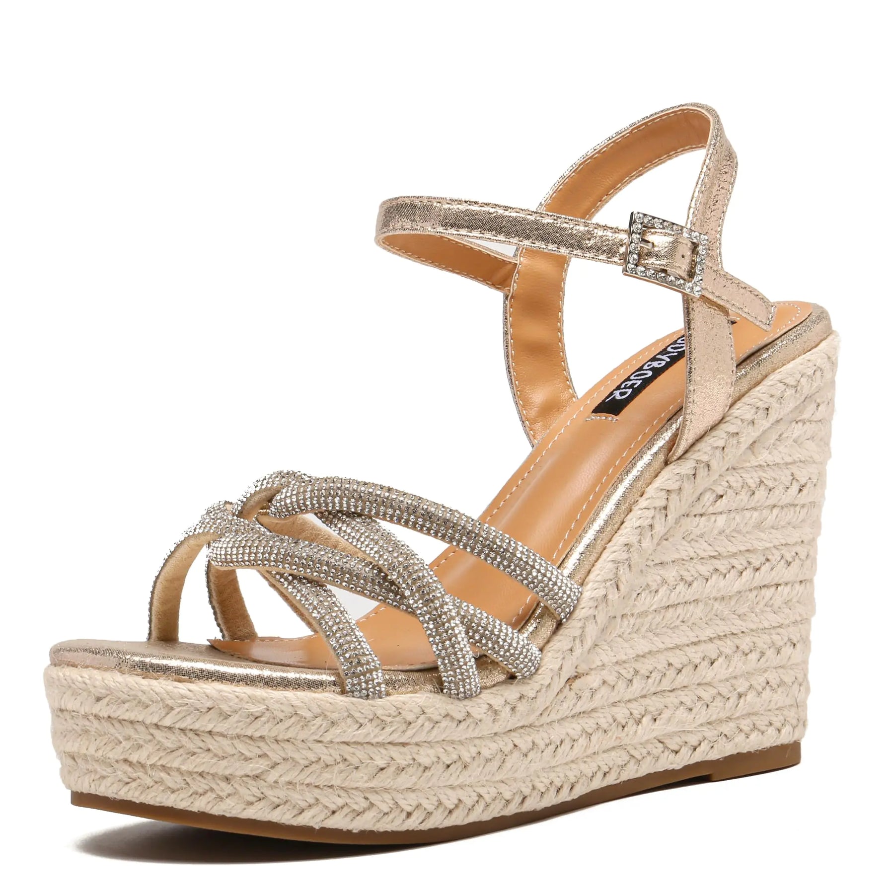 ZodyBoer Rhinestone Wedge Sandals - Women's High Heel Platform Espadrille Sandals with Ankle Strap